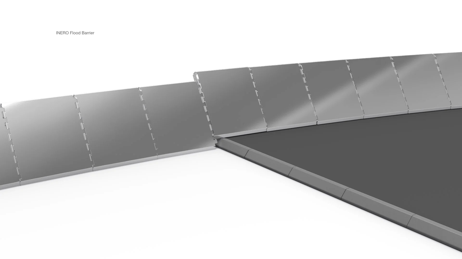 Ineroの止水板は、30度の内向き・外向きコーナーパーツを使って、建物の角や曲がった通路にも対応可能です。
