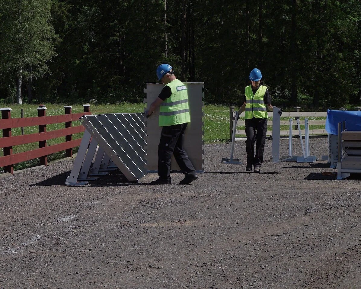 さらに、専用設計のカーゴパレットにより、各々の止水板を立てた状態で保管・順番に取り出して設置できるため、持ち上げ・運搬・設置のすべてにおいて、作業者の動きを人間工学的にサポートします。